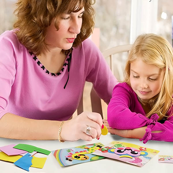 DIY naljepnice su vrlo trodimenzionalne, sa samoljepljivom poleđinom. Kada završe, djeca ga mogu zalijepiti na zid da ukrase Vašu kuću ili ga mogu pohraniti kao dragu uspomenu.