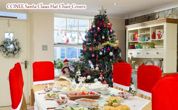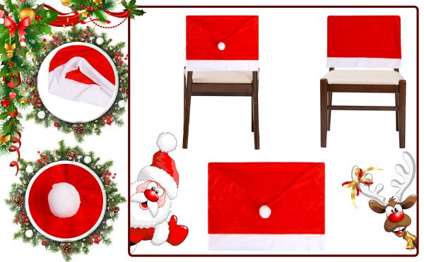 Red Hat navlake za naslone stolica savršene su za korištenje u božićnoj sezoni, dobre unutarnje dekoracije za dom, ured i učionicu, ostavit će na vaše prijatelje, obitelj prekrasan božićni dojam.