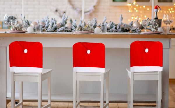 SANTASEAT božićne navlake za stolice dizajnirane su kao navlake koje podsjećaju na kape Djeda Mraza,