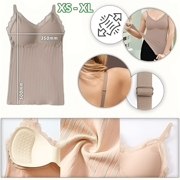 Dizajniran za krajnju udobnost tijekom svih svakodnevnih aktivnosti. Bez obzira jeste li na poslu, kupujete ili uživate u društvenom okupljanju, ovaj top pruža podršku i pokrivanje bez potrebe za grudnjakom.
