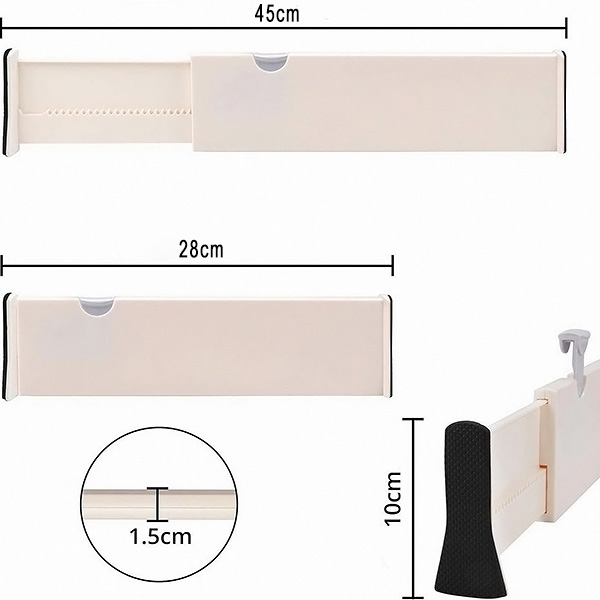 Bilo da se radi o kuhinjskom priboru, kupaonskim potrepštinama ili čarapama u spavaćoj sobi, ovi se razdjelnici mogu podesiti od 28 cm do 45 cm kako bi odgovarali većini ladica. Svoj prostor možete prilagoditi točno onako kako vam treba.