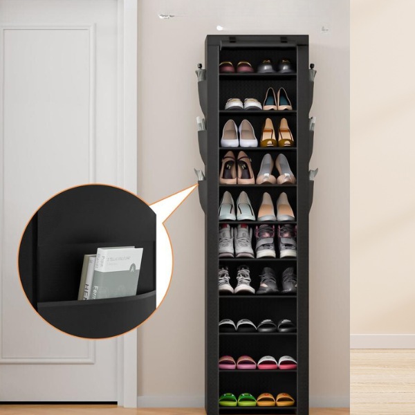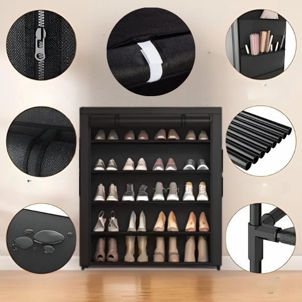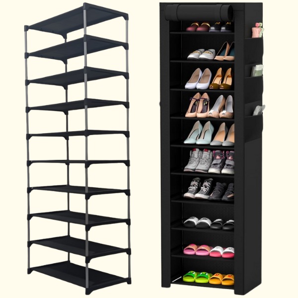 Opremljen tkaninom otpornom na prašinu i zatvaračem. Ovaj stalak za cipele osigurava da vaše cipele ostanu čiste, štiteći ih od prašine i prljavštine.