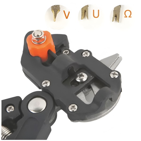 Ovaj alat sadrži 3 zamjenjive oštrice (V, U, Ω) koje omogućuju izvođenje različitih vrsta rezova, čineći ga savršenim za razne zadatke rezidbe i cijepljenja.