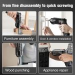 🔧 Fleksibilno vratilo za uske prostore – doseže kutove i mjesta gdje standardni odvijač ne može, idealno za sastavljanje namještaja, popravke uređaja i kućno održavanje