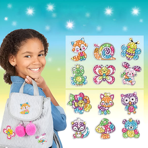 Ukrasite, personalizirajte i dodajte sjaj svakodnevnim predmetima s lakoćom. Ovaj svestrani komplet omogućuje djeci i odraslima da ukrase svoje boce s vodom, bilježnice, maske za telefon i još mnogo toga. Pretvara jednostavne predmete u blistava remek-djela. Zabavno je, poučno i savršeno za sve uzraste!